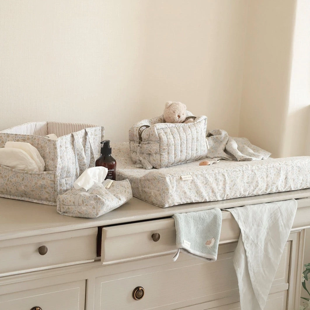 Le complément parfait à votre table à langer. Notre panier à couches matelassé a 2 poches extérieures et 3 compartiments intérieurs, parfaitement dimensionnés pour ranger les couches, les crèmes et les lingettes. Les poignées rendent le panier portable afin que votre bébé puisse toujours être à portée de main.