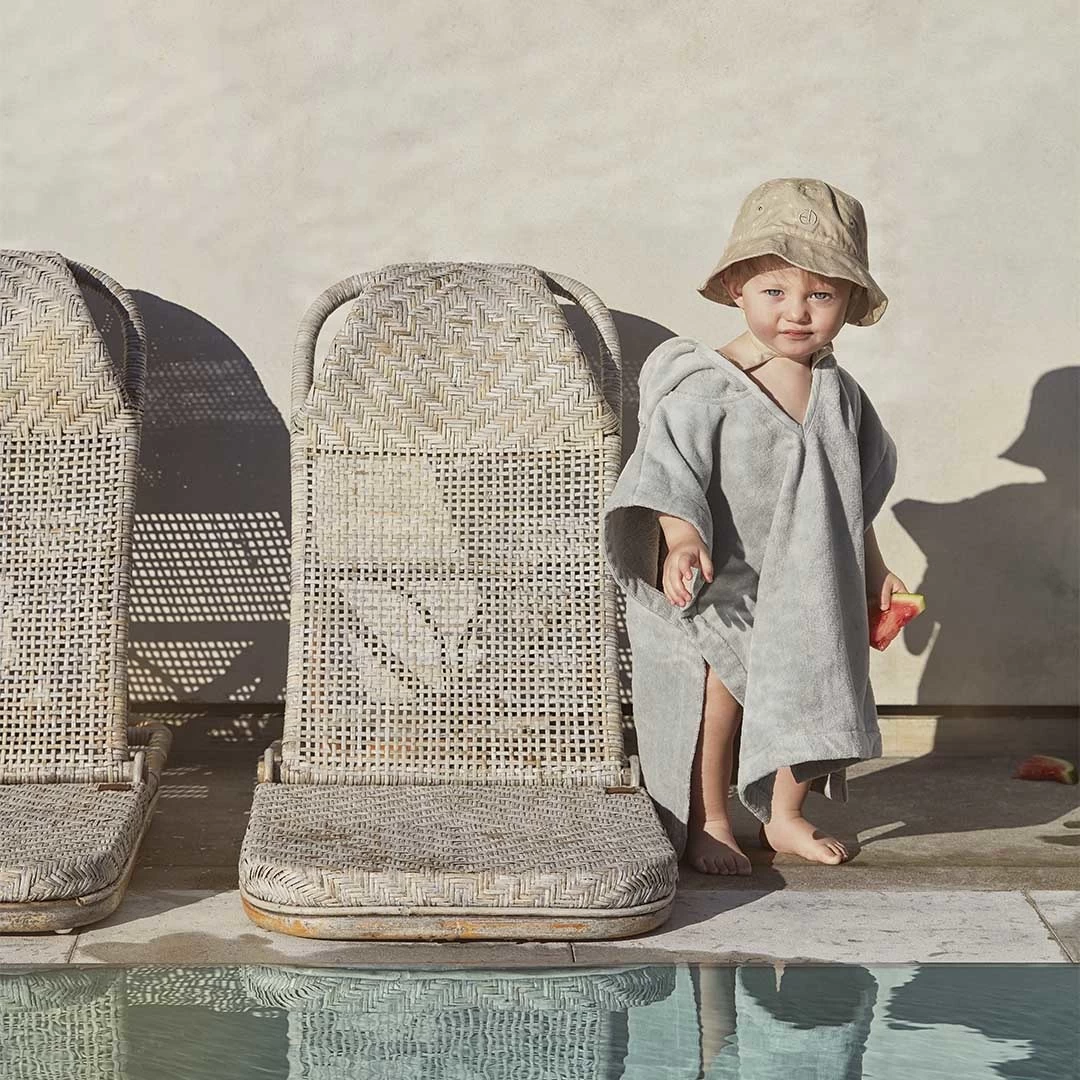 Un joli poncho de bain à l’intérieur en French Terry super absorbant qui gardera les enfants bien au chaud. Un capuchon et un bouton pression chaque côté pour garder les bras en place et laisser les enfants jouer librement.