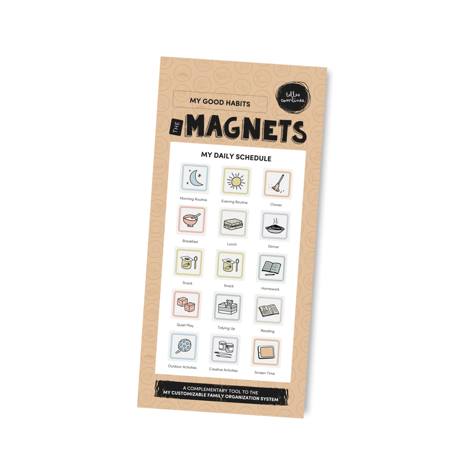 A series of playful, magnetic pictograms to help children understand the daily schedule and facilate transitions between activities.