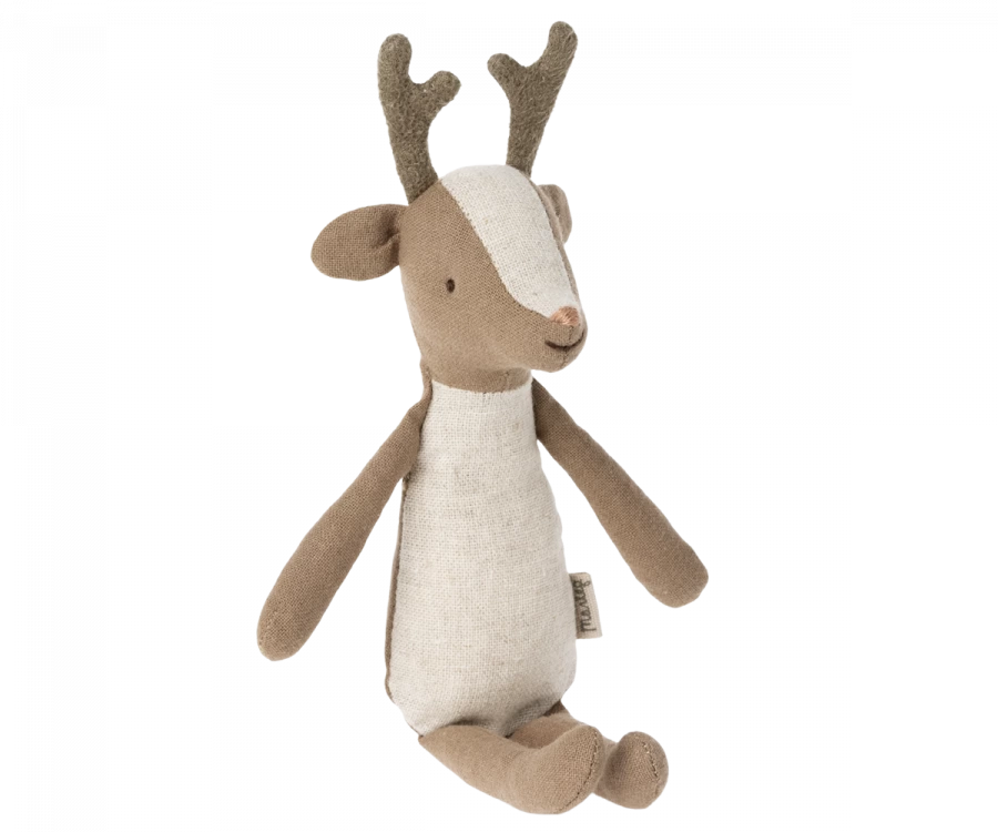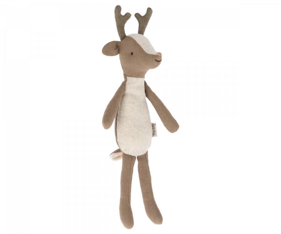 Un grand frère cerf doux et adorable. Big Brother a des bois en faux suède qui sont si doux et une petite queue. Il a un joli nez rose avec son visage amical et son sourire si doux.