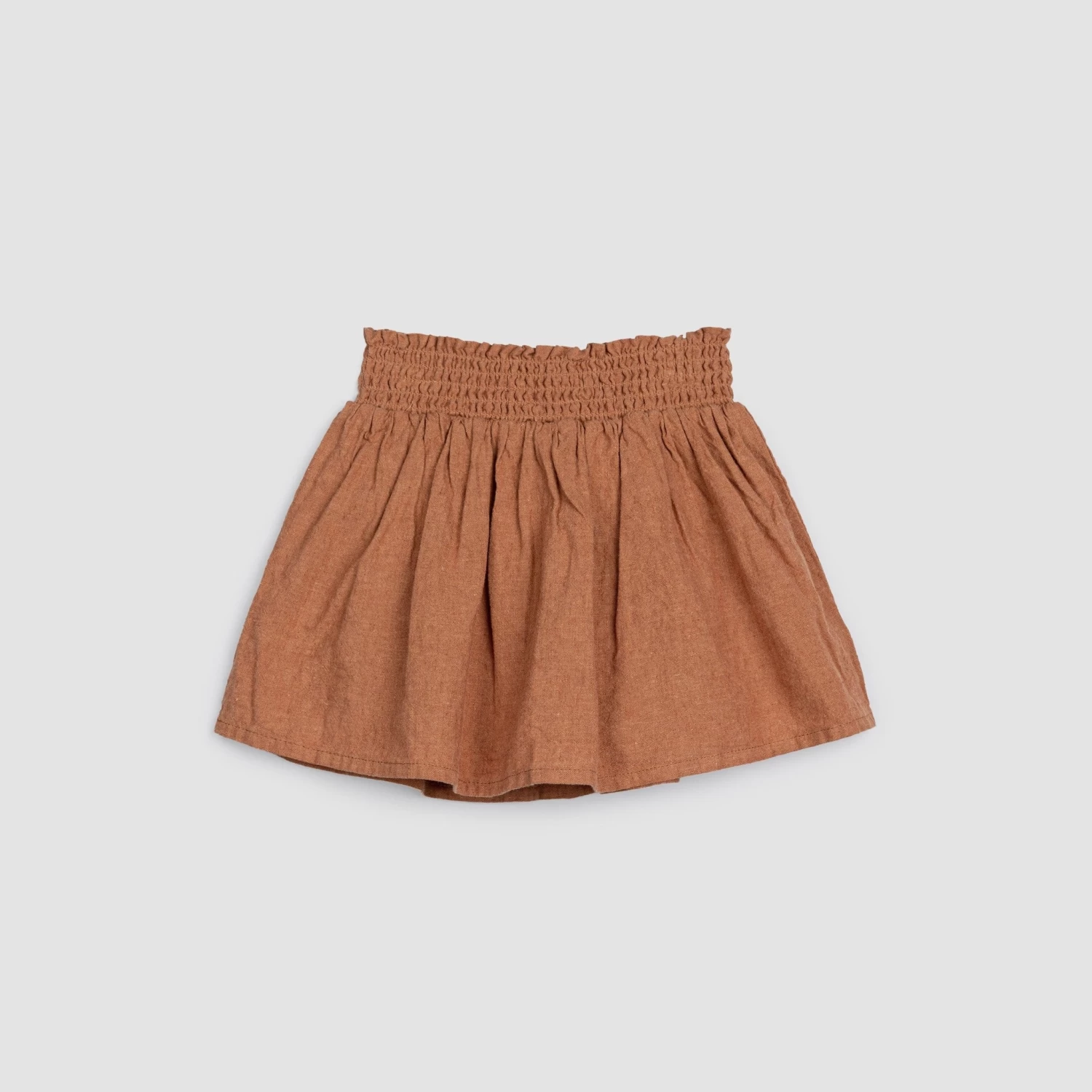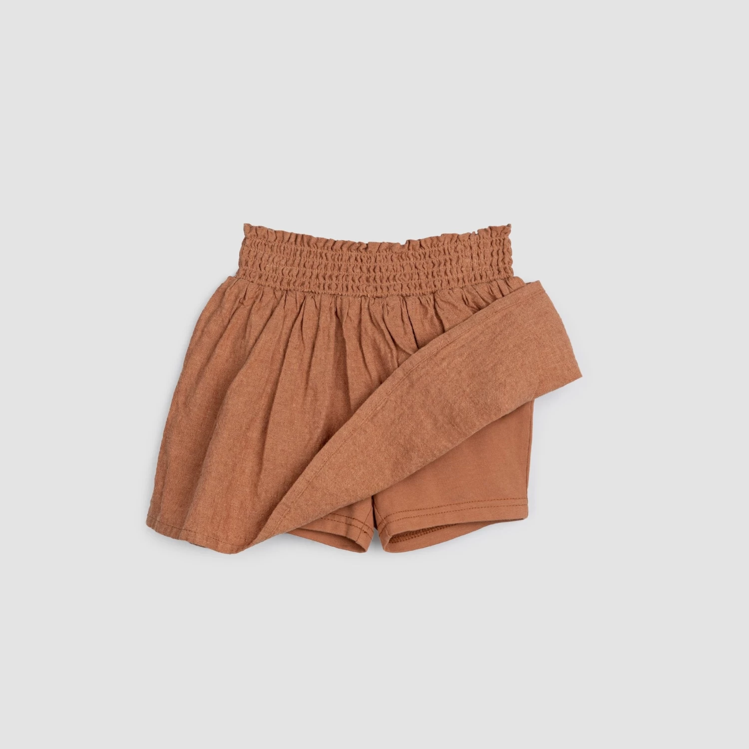 Parfaite pour les petites filles toujours en mouvement, cette jupe marron délavée est virevoltante et possède aussi un short intégré en dessous. Avec une large bande de taille élastique, la jupe est super facile à porter et offre un ajustement confortable toute la journée. Associez-la à un t-shirt et un pull de la même gamme pour un look rétro indémodable.