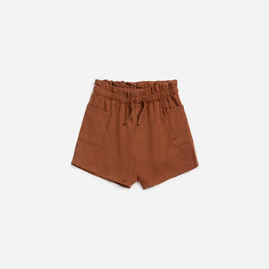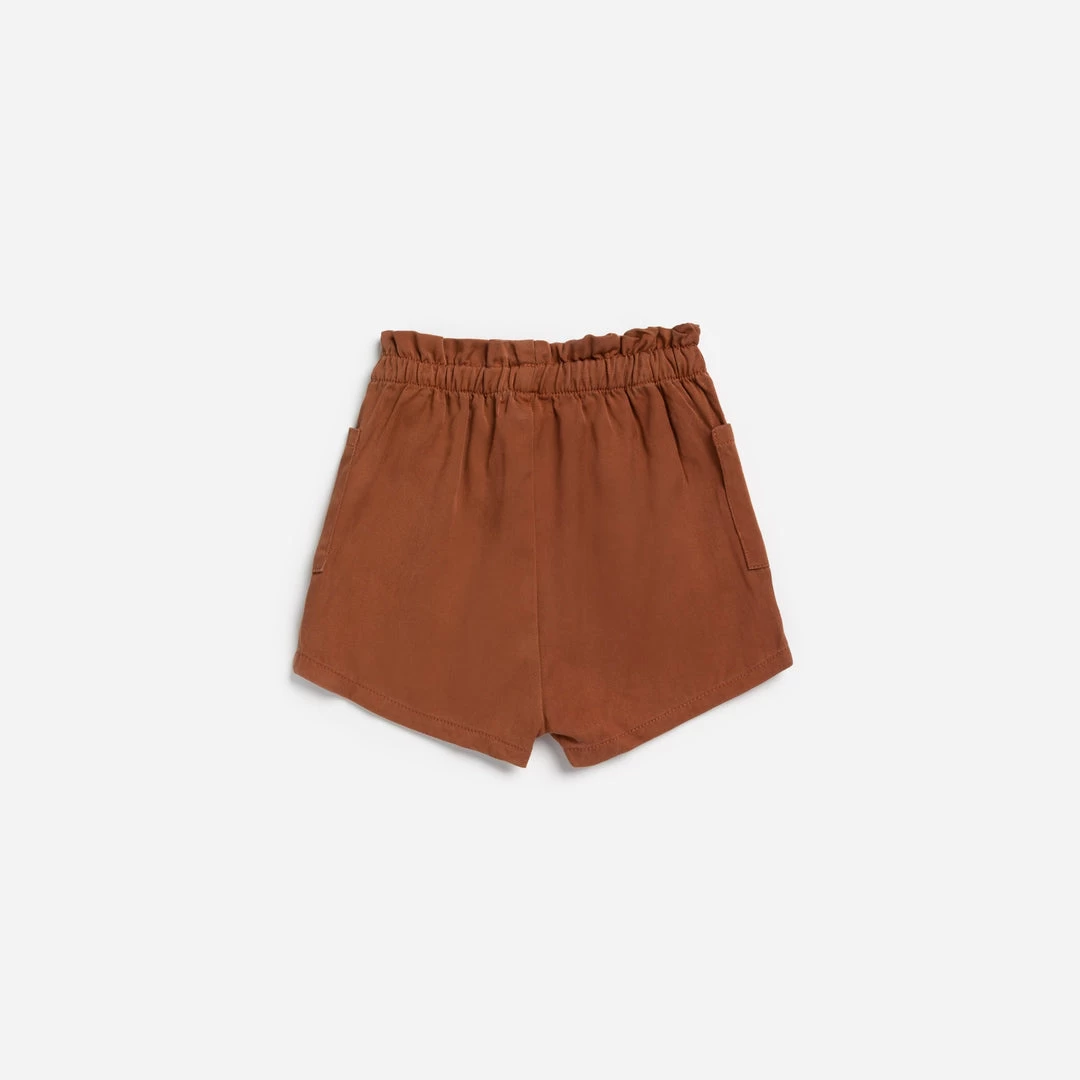 Ce short aux tons terreux a une coupe style « paper bag ». Ce style ample peut être porté avec des t-shirts rentrés pour un ajustement parfait. Les poches de chaque côté ajoutent un aspect pratique, afin que votre petite fille soit libre de se déplacer et de ramasser des objets en chemin. Fabriqué en lyocell, ce short est super léger et frais pour le printemps et l’été.