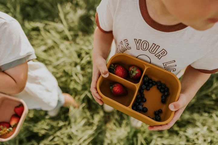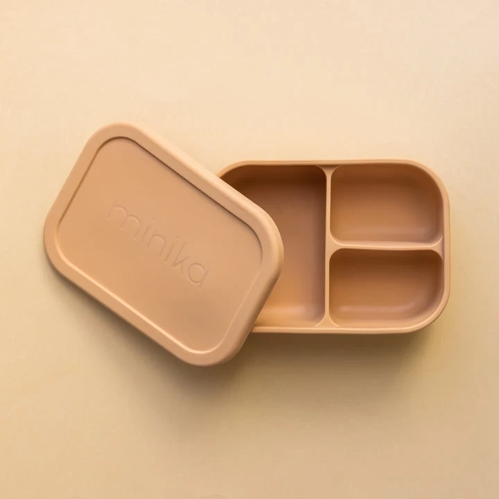 Boîte bento avec couvercle refermable. Silicone alimentaire sans BPA. Laver avec du savon et un chiffon mouillé ou au lave-vaisselle. Allant au micro-ondes et au congélateur. Idéal pour transporter les diner dans la boîte à lunch.
