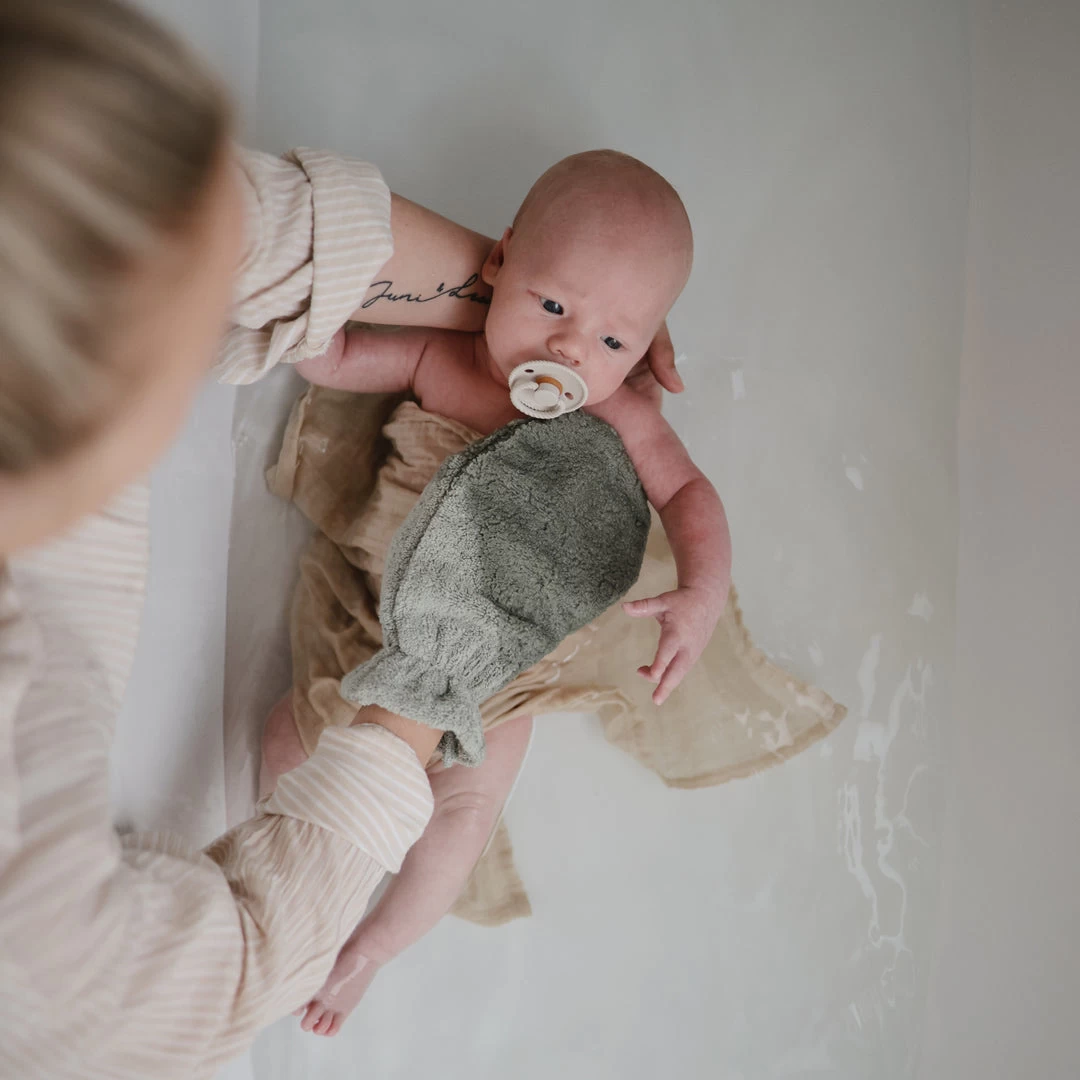 Nettoyez la peau sensible sans souci et faites profiter les petits profitent d’un gommage mousseux avec notre mitaine de bain extra douce et absorbante.