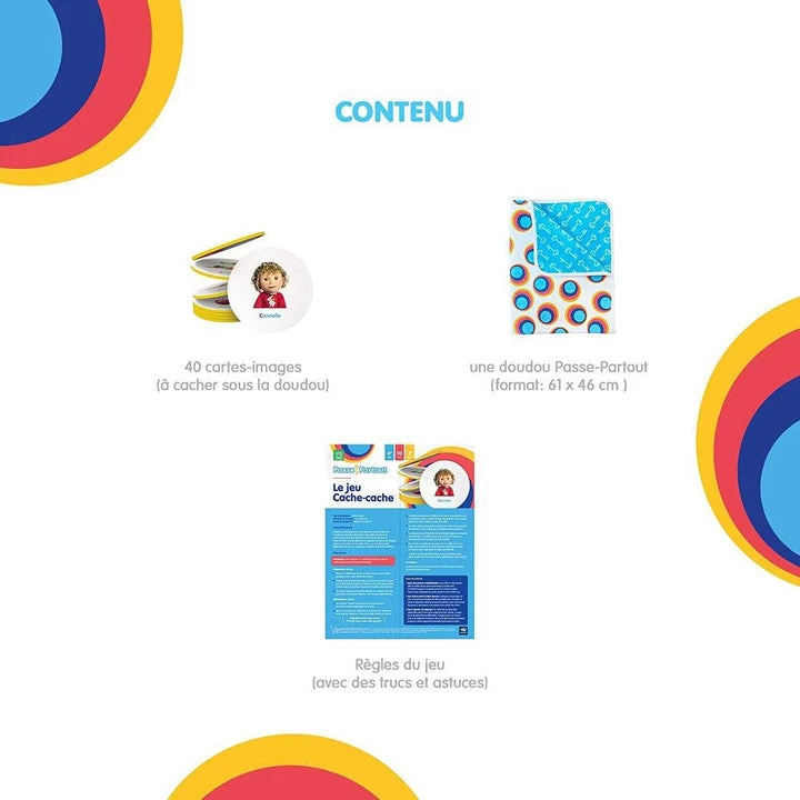 Travaille ton sens de l’observation et ta mémoire avec le jeu Cache-cache de Passe-Partout! Comme Passe-Carreau et Passe-Partout, joue les détectives et regarde bien les cartes-images placées sur la table par le maître du jeu, car il en fera disparaître une avec sa couverture magique. Sauras-tu l’identifier?