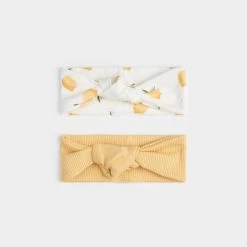 Ce lot de 2 bandeaux est parfait pour accompagner les ensembles et les vêtements de nuit de la même gamme. Le lot contient un bandeau jaune et un autre avec notre imprimé de citrons. Avec leur nœud fantaisie sur le devant, les bandeaux sont parfaits pour composer la tenue idéale ou protéger les petites oreilles du froid.
