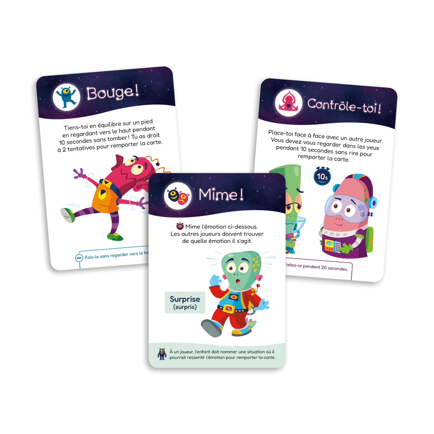 Fais tenir des cartes en équilibre sur ton corps! Mémorise les éléments sur la carte! Regarde un autre joueur dans les yeux sans rire! Dis le virelangue sans te tromper!