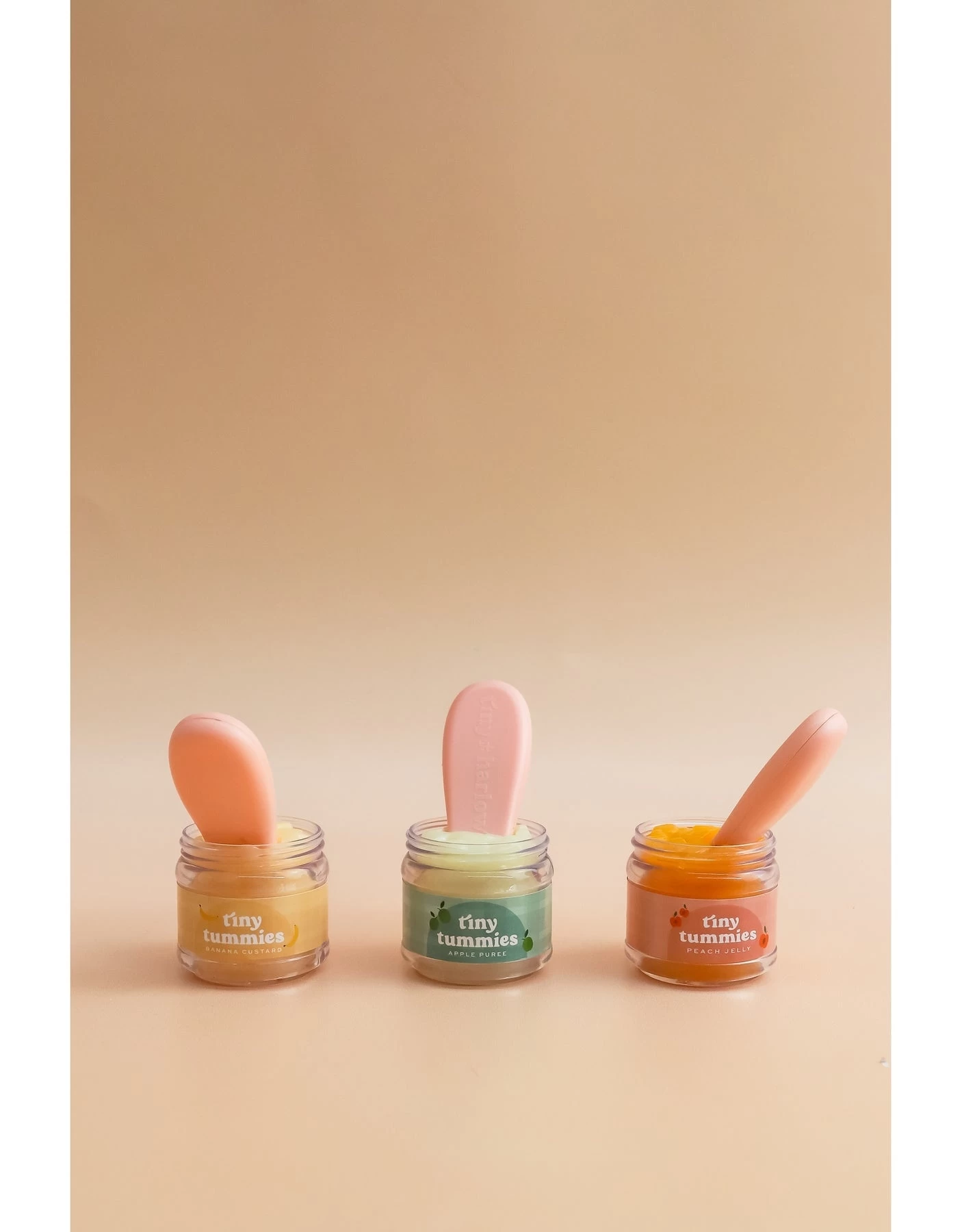 Nourrissez votre poupée de notre délicieuse crème pâtissière aux fraises Tiny Tummies au moment des repas.